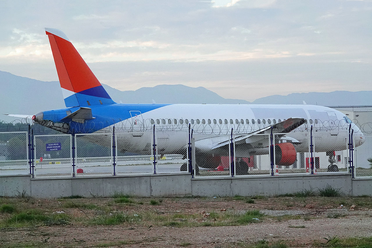 Das ergab die Recherche : Dieses Flugzeug am Flughafenzaun entspricht sehr wahrscheinlich der Maschine RA-89085, die im November 2024 nach einer Landung Feuer fing und seither dort abgestellt ist.