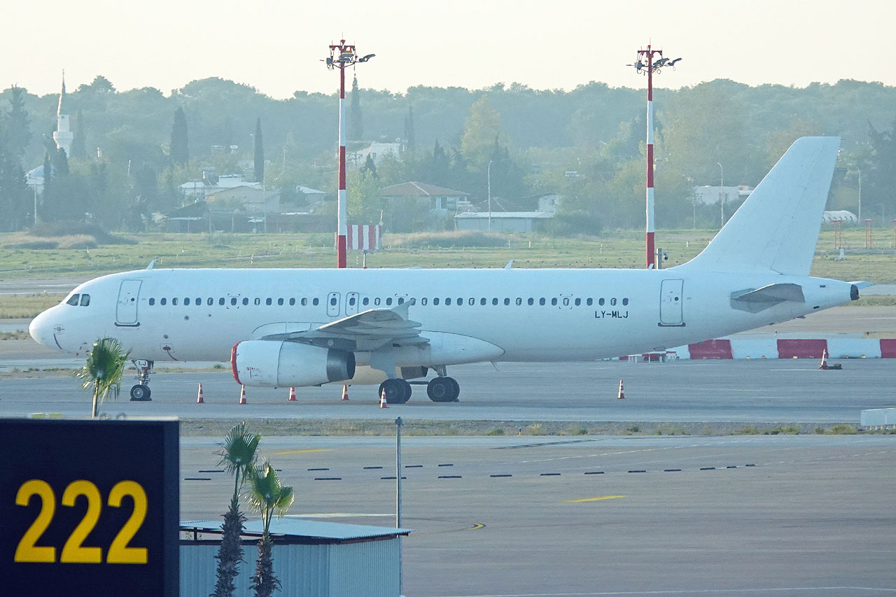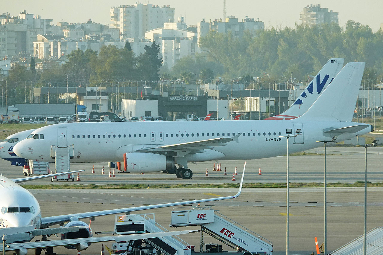 Zwei weiße Sunexpress A320 mit litauischen Kennzeichen (vorher bei Avion Express)