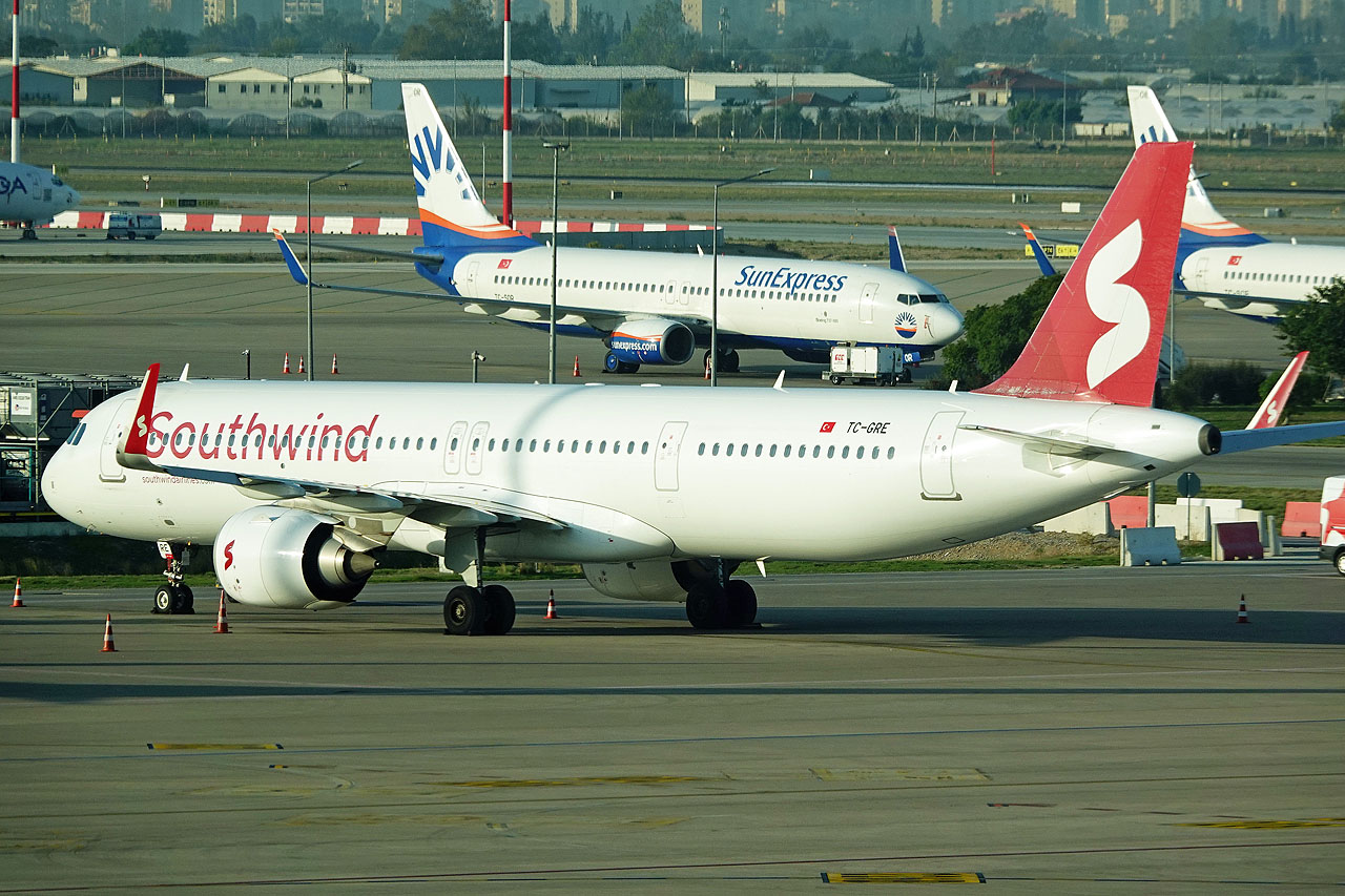 Kurz vor dem Einstieg zwei gute Fotos (Southwind A321neo und Sunexpress B737-800)