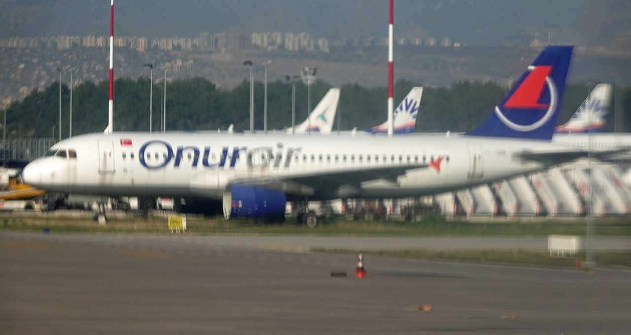 herumstehen. Auch den (leider völlig verwackelten) A320 von Onur Air hatte ich