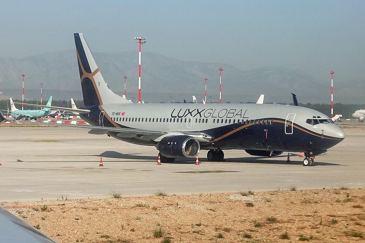 ... und tatsächlich noch was Neues für mich, eine B737-800 von LUXX GLOBAL, die vorher zu MGA Airlines gehörte. Die dahinter stehende Maschine erwischte ich später tatsächlich noch recht gut während des Rollens zur Startbahn.
