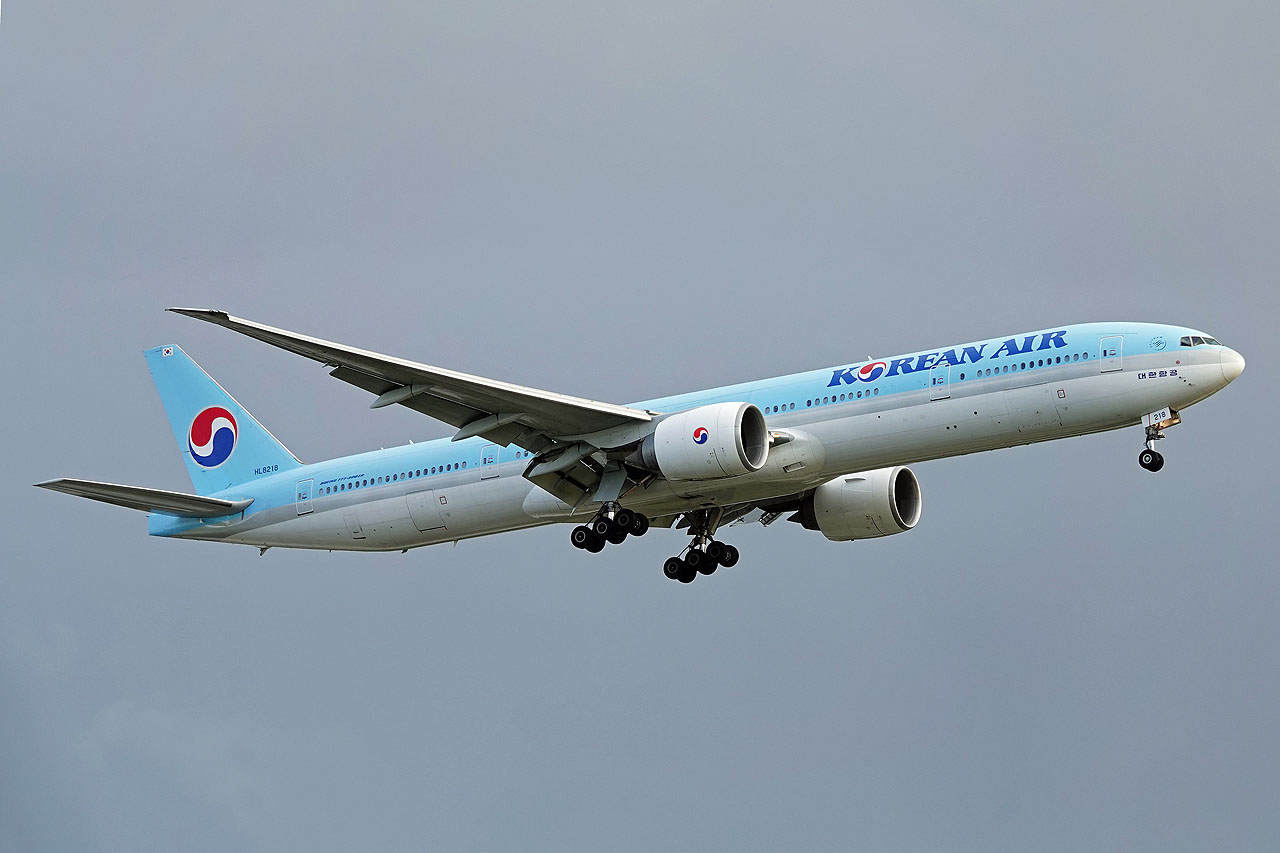 Der nächste Schauer kündigte sich an, das nächste Bild (B777-300 von Korean Air) entstand direkt an der Bushaltestelle Hatton Cross, wo wir diesmal ein bissel länger auf unseren Bus warten mussten.