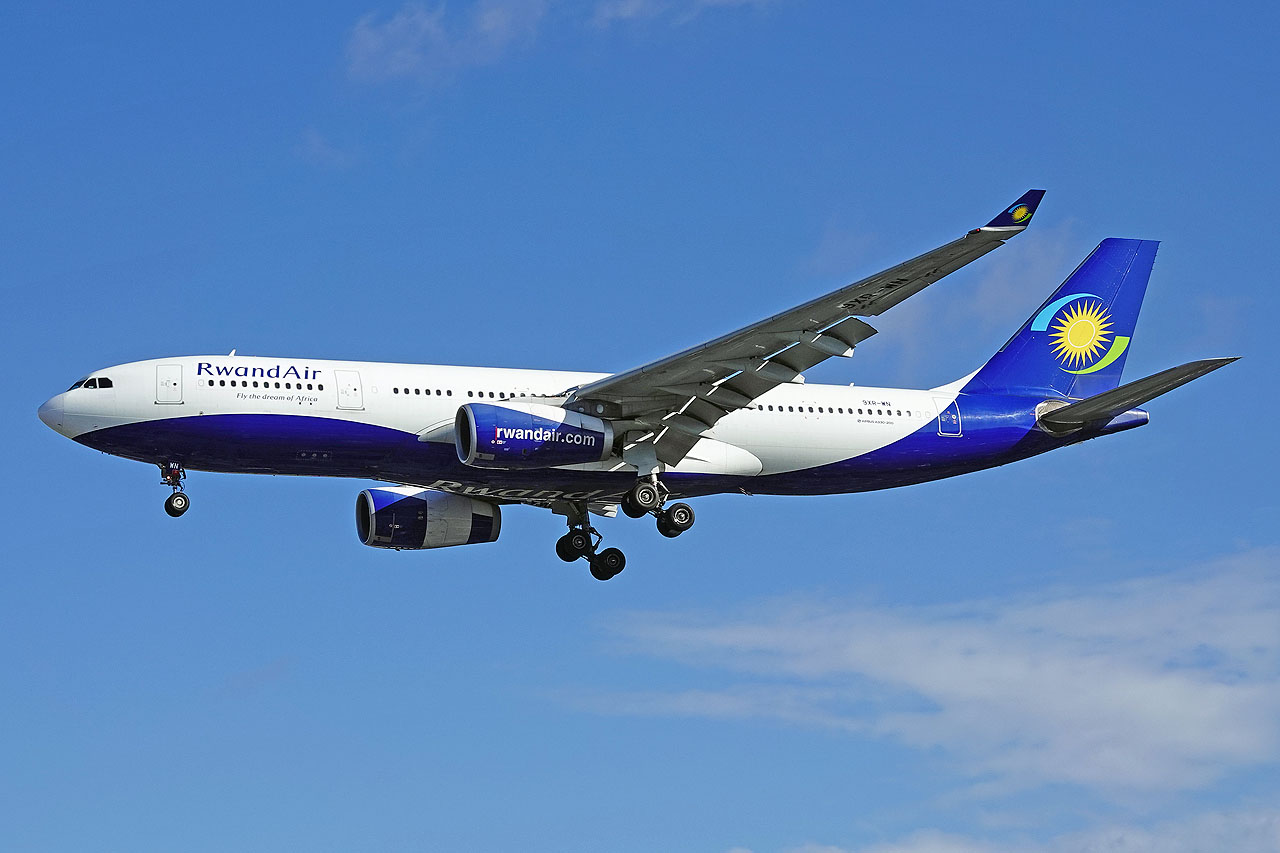 und endlich auch die Rwand Air (A330-200) auf der "richtigen" Bahn bei guten Lichtverhältnissen